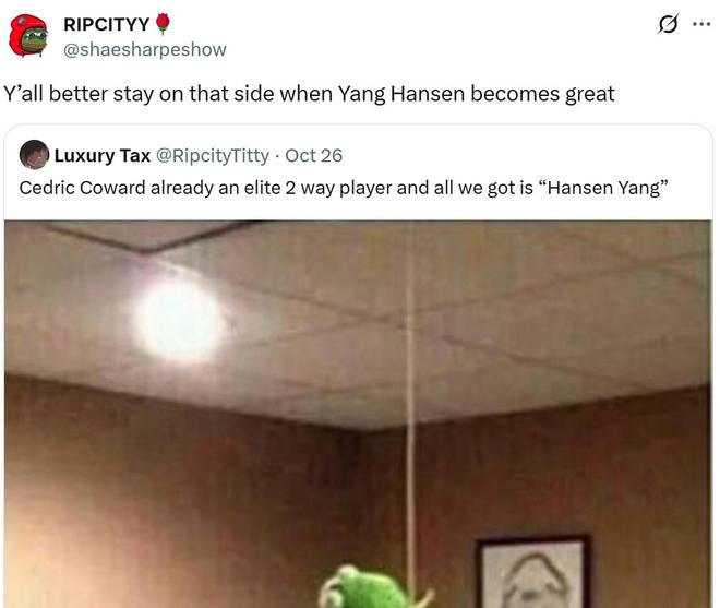 但也有坚持力挺杨瀚森的开拓者媒体,RIPCITYY转发驳斥道:“等杨瀚森打好了到时你可别来站队。”