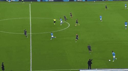 第33分钟,德布劳内操刀,骗过索默,一蹴而就,但这一次的射门造成了德布劳内大腿后侧肌肉严重拉伤,被换下场。