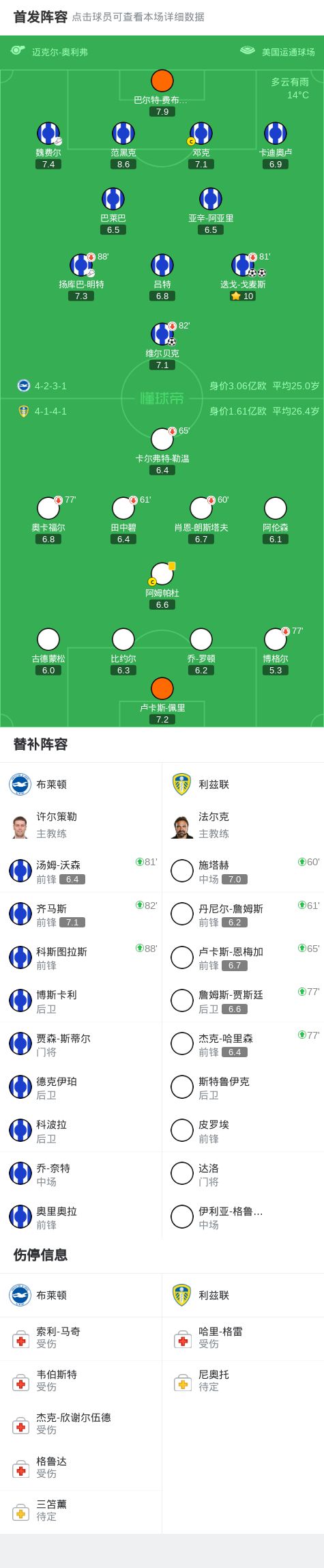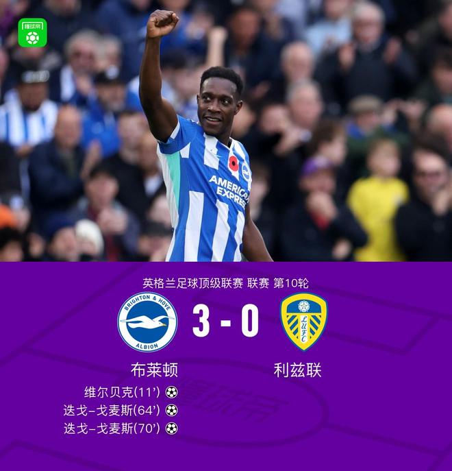 布莱顿3-0利兹联,维尔贝克破门,迭戈-戈麦斯梅开二度
