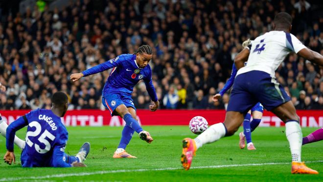 第43分钟,切尔西差点扩大领先优势,古斯托下底传中,佩德罗包抄射门,维卡里奥腾空而起,将球托出横梁。