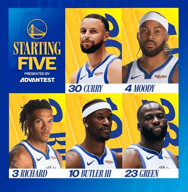 今天比赛,首发阵容方面,勇士队这边,科尔临时变阵排出的最新首发五人组为:斯蒂芬-库里、摩西-穆迪、威尔-理查德、吉米-巴特勒、德雷蒙德-格林;魔术队这边,首发阵容则为:小瓦格纳、小卡特、贝恩、萨格斯、达-席尔瓦。