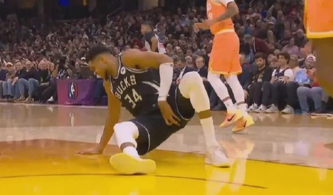 比赛进行到第二节,字母哥突然捂着裆部倒下了,他随即退出比赛,直接回到了更衣室。